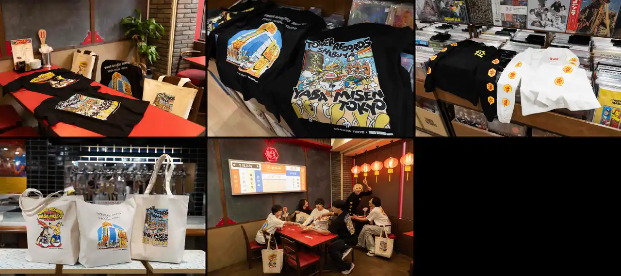 このたび矢場味仙の渋谷出店を記念して、タワーレコード渋谷店「KNOW MUSIC KNOW ASIA ~アジア音楽旅~」とのコラボレーションが決定。イラストレーターのELLYLANDによる描き下ろしヴィジュアルをグッズ化し、タワーレコード渋谷店限定で販売します。描き下ろしビジュアルには、矢場味仙の大人気メニューである台湾ラーメンを食べる犬や、キャラクター化された青菜炒めや餃子などが登場。「台湾ラーメン×音楽」という“味覚”と“聴覚”が交差する、新たなアジアカルチャー体験をご提案します。 |