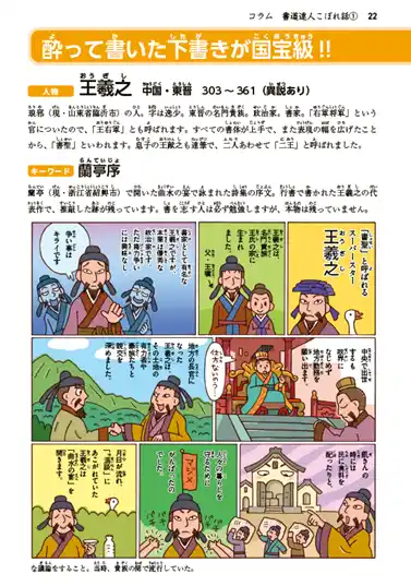 本書は「美しい字」を学ぶだけでなく、通常の漢字辞典として部首索引・音訓索引・総画索引も完備。学習の友として長く活用できます。また、書の疑問に答えるQ&Aや、日本・中国の有名書家(空海や王羲之など)を紹介するマンガコラムも多数収録。楽しみながら書道文化や歴史にも触れられ、知識と教養を深めることができます。 |