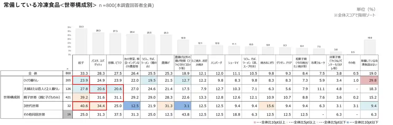 常備している冷凍食品<世帯構成別>(n=800) |