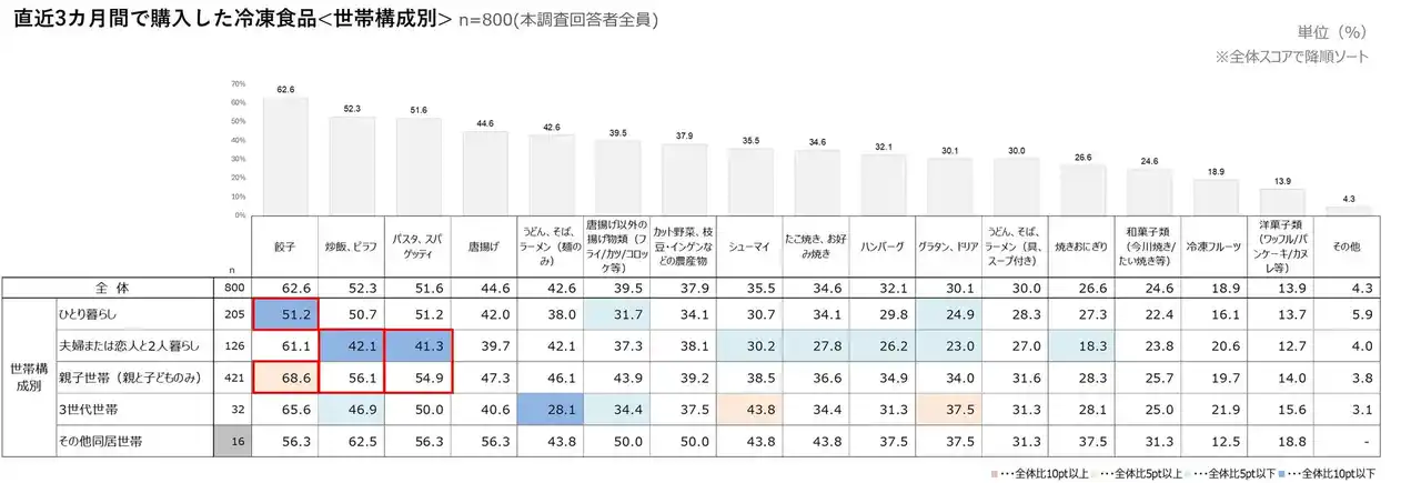 直近3カ月で購入した冷凍食品<世帯構成別>(n=800) |