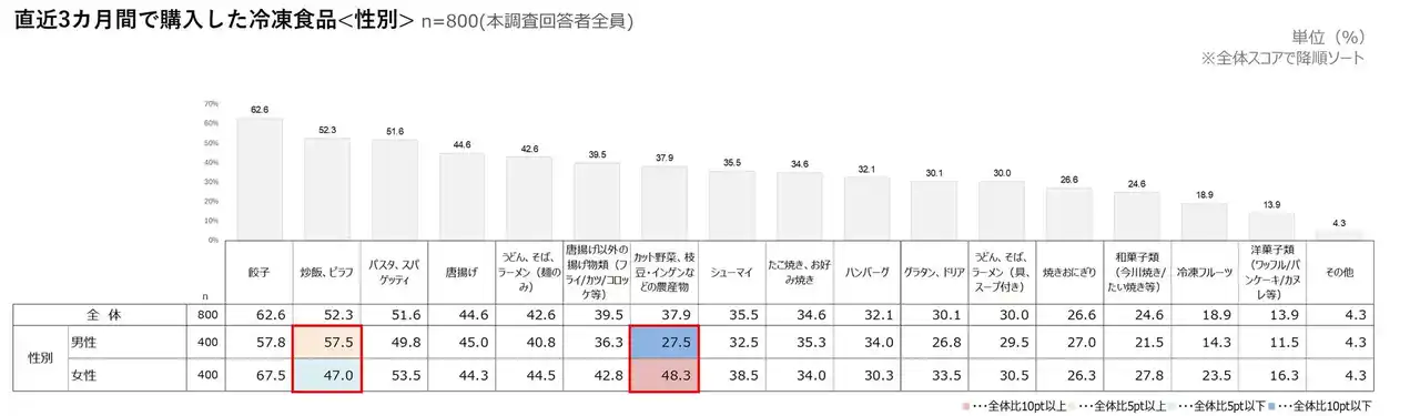 直近3カ月で購入した冷凍食品<性別>(n=800) |