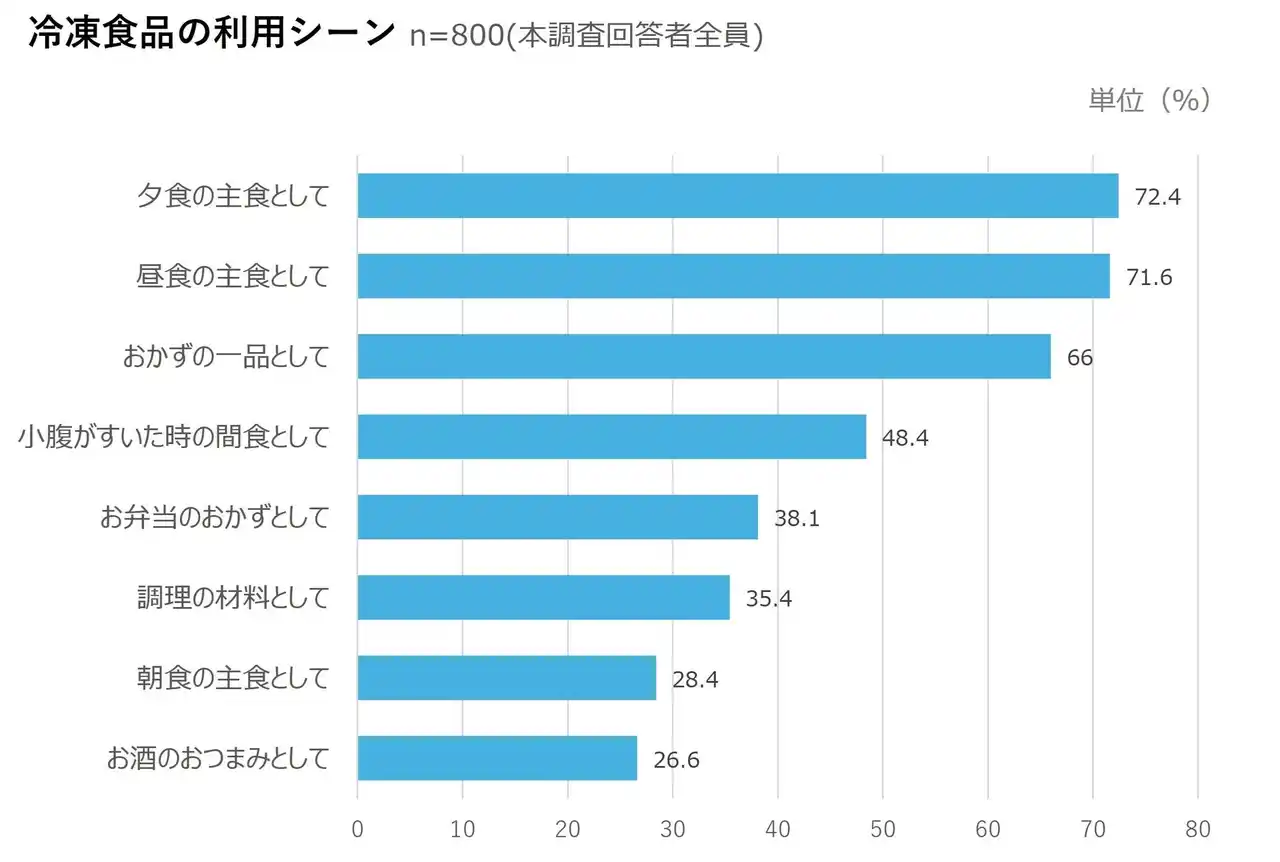 冷凍食品の利用シーン、「夕食の主食」、「昼食の主食」がともに7割越 |
