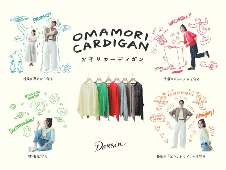 | ワールドグループの株式会社フィールズインターナショナルが展開するライフスタイルストア「Dessin(デッサン)」(https://store.world.co.jp/s/brand/dessin/)は、私の毎日を守る『お守りカーディガン』を紹介する特集ページを4月17日(金)より公式オンラインストアにて公開いたします。 | |||