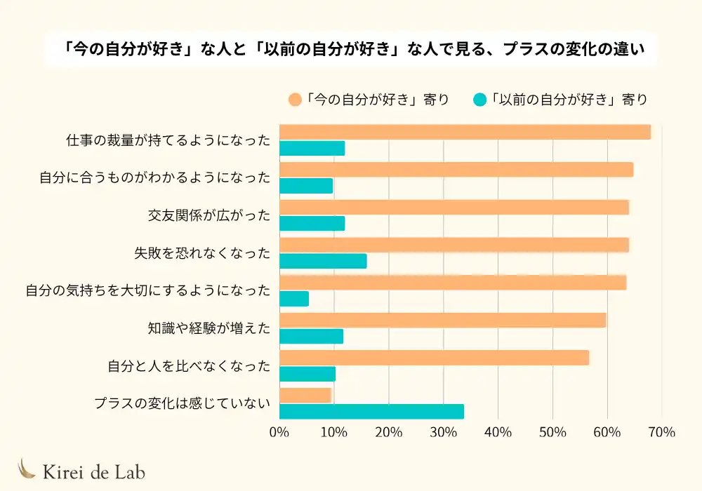 結果4.:「今の自分が好き」な人と「以前の自分が好き」な人では、変化の受け止め方や日々のケアに違いも |