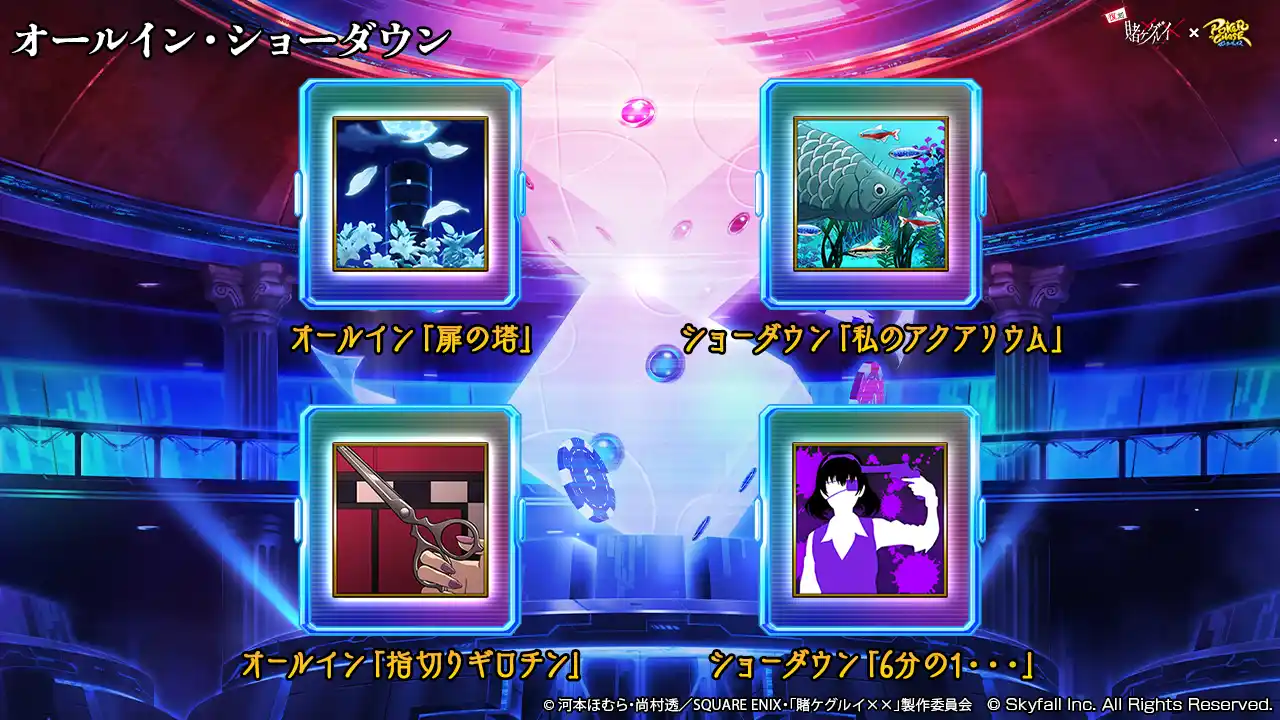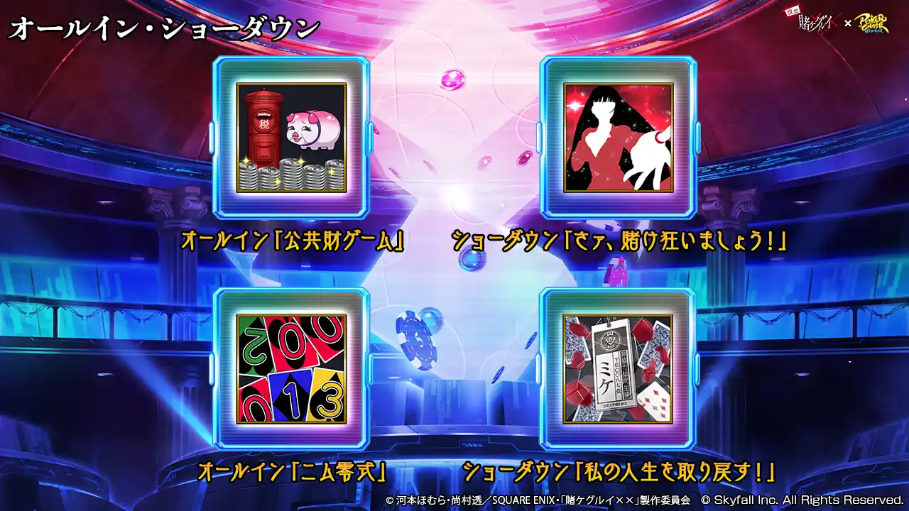 応募していただいた方の中から抽選で各1名様(計4名様)に「賭ケグルイ××」コラボキャラクターの『ポーカーチェイス』内プレイアブルキャラをプレゼントします。 |