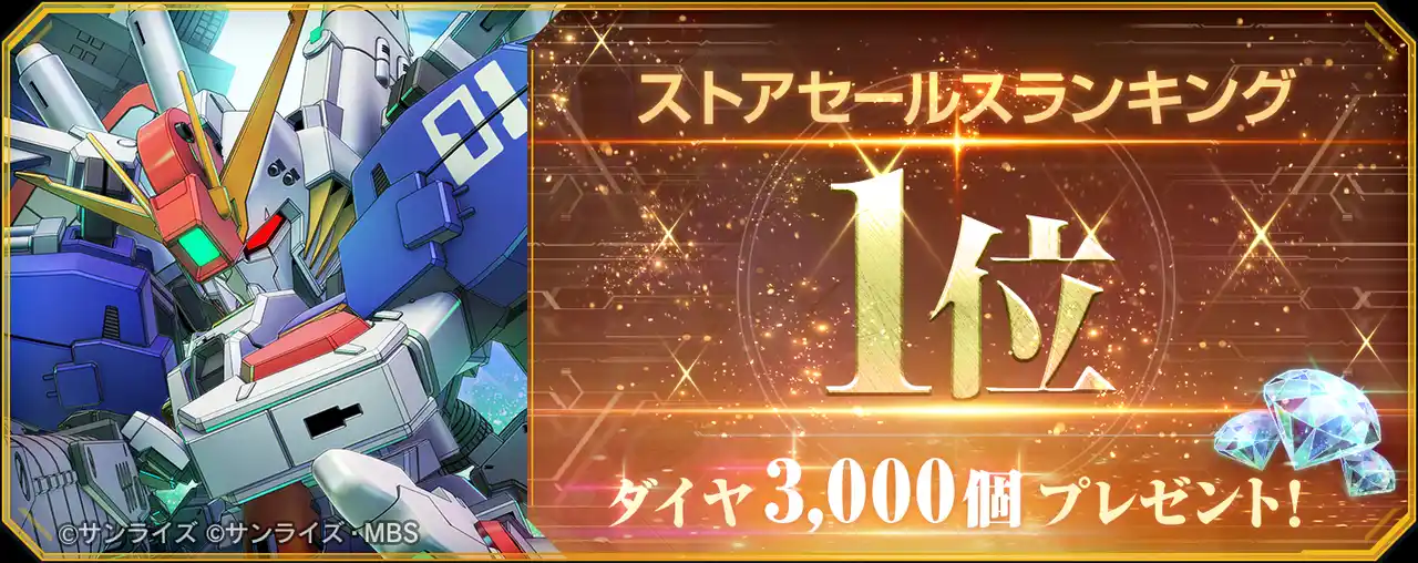 ストアセールスランキング1位を記念して、ダイヤ3,000個を全員へプレゼント! |