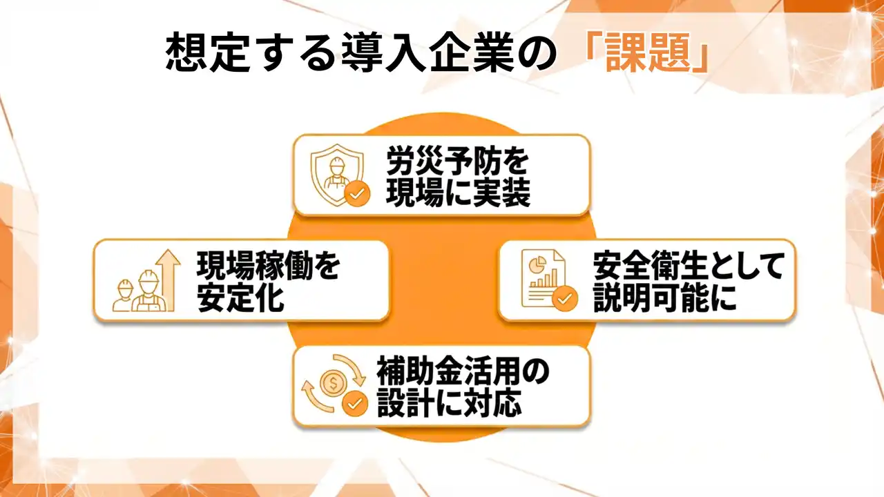 製造、物流、建設、介護等で身体負担が大きく、現場稼働の安定化が課題 |