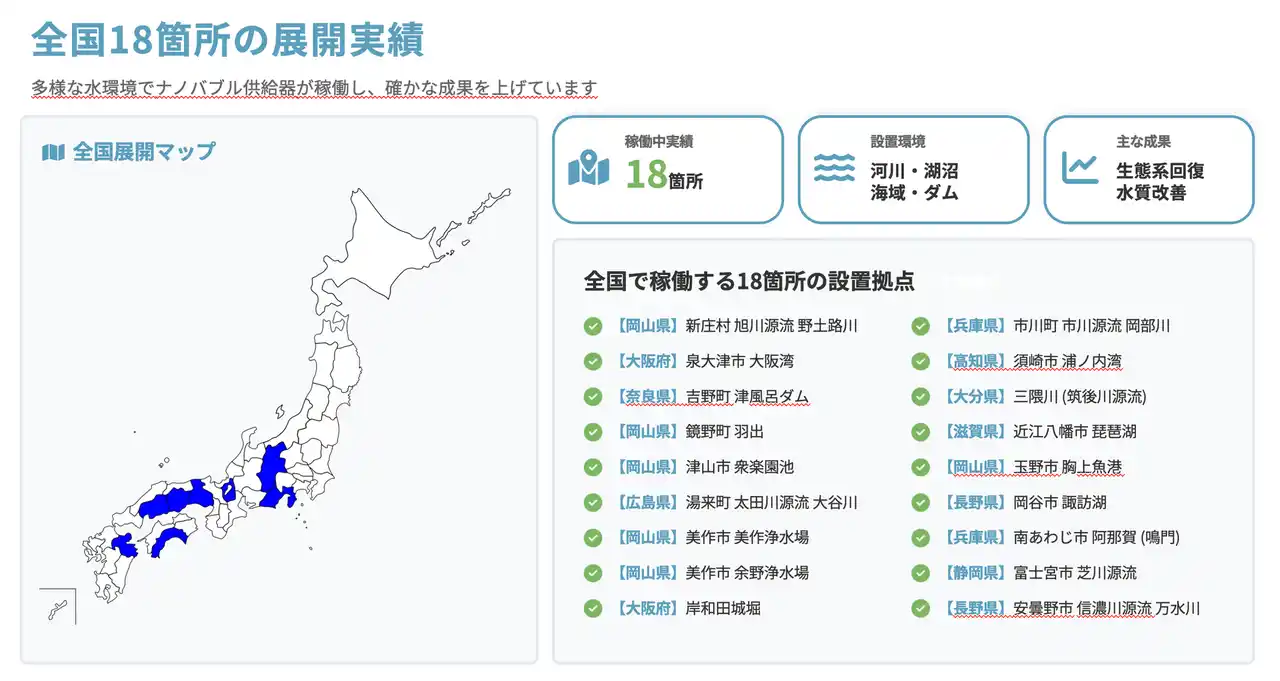 事業内容: ナノバブル発生型水質浄化装置(BENTENシリーズ)の開発・設置、「生態系復活プロジェクト」の推進 |