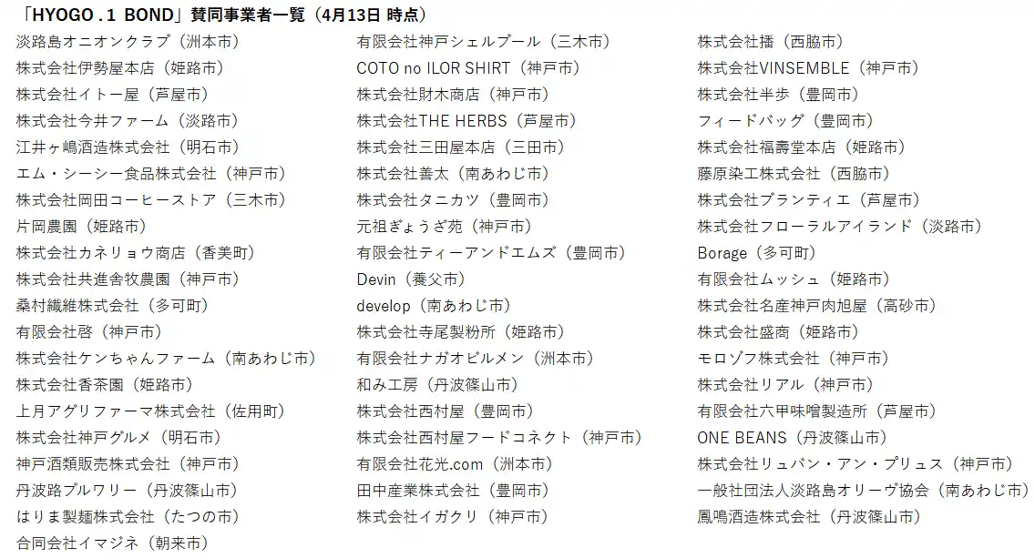 | 株式会社HAQTSUYA(代表企業)が運営する「ひょうごHAQTSUプロジェクト」は、兵庫県内のふるさと納税返礼品事業者の有志と共に、寄附額の0.1%を被災地へ届ける支援活動「HYOGO.1 BOND(ひょうごポイントワンボンド)」を推進しています 。 | |||||||||