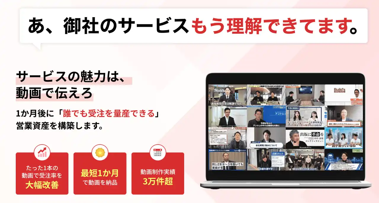 本サービスは、認知獲得ではなく「受注率・商談化率の向上」にコミットする動画制作サービスです。 |