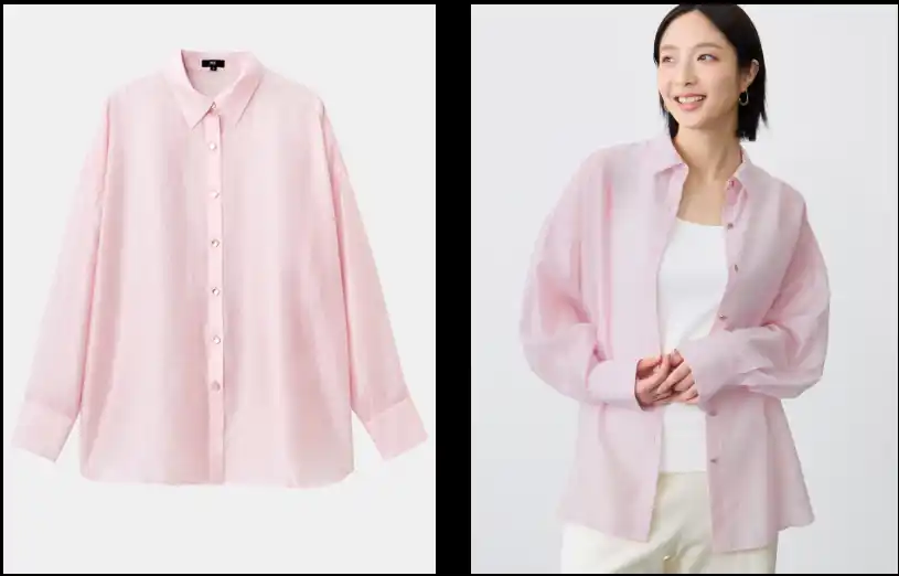 軽やかで、ほどよい透け感のシアー素材が上品なメタルボタンシャツ。ゆったりとしたシルエットでリラックス感がありながらも、肩周りはフィットさせることで着ぶくれしにくいデザイン。 |