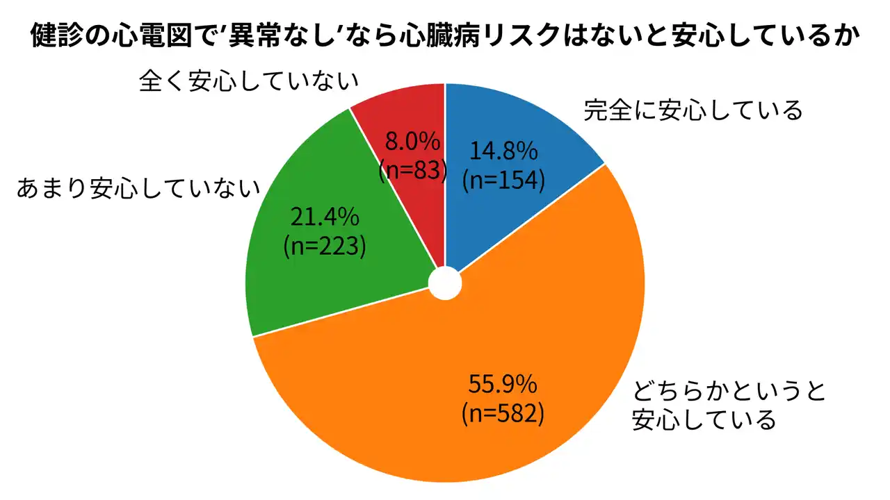 | 「会社の健康診断や人間ドックなどで行う心電図検査(数十秒)で異常が出なければ、ご自身の心臓病リスクはないと安心していますか」という質問に対し、 | |||||||