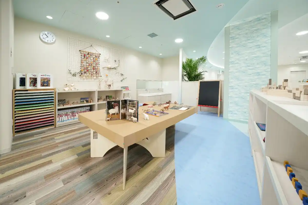 お子様たちが安全に過ごしながら、想像力をかき立てるおもちゃや本に触れたり、アトリエスペースで自由に創作をしたりと、のびのびと過ごせる環境を提供します。 |