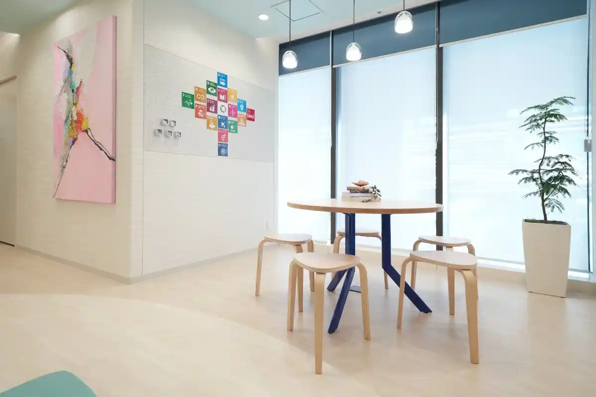 ポピンズのナーサリーでは、働く保護者の方の利便性も重視。保護者の方が利用できるコワーキングスペースも設置し、お迎え前に仕事をするなど自由に活用できます。また、おむつ、タオルのサブスクリプションサービスに加え、広々としたバギー置き場も利用可能です。 |