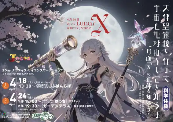 本プログラムでは、子どもたちが実際に天体望遠鏡を製作し、月面に現れる「月面X」と呼ばれる現象を観察します。