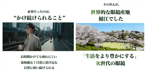 鯖江は、世界的な眼鏡産地として、高い品質基準と卓越したデザイン力により国際的な評価と信頼を築いてきました。眼鏡に関して長年にわたり「かけ心地」や「日常へのなじみやすさ」を追求してきた地域でもあります。主張しすぎず、長時間かけても疲れにくい設計思想。それは、SABERAが目指す世界観と一致しています。 |