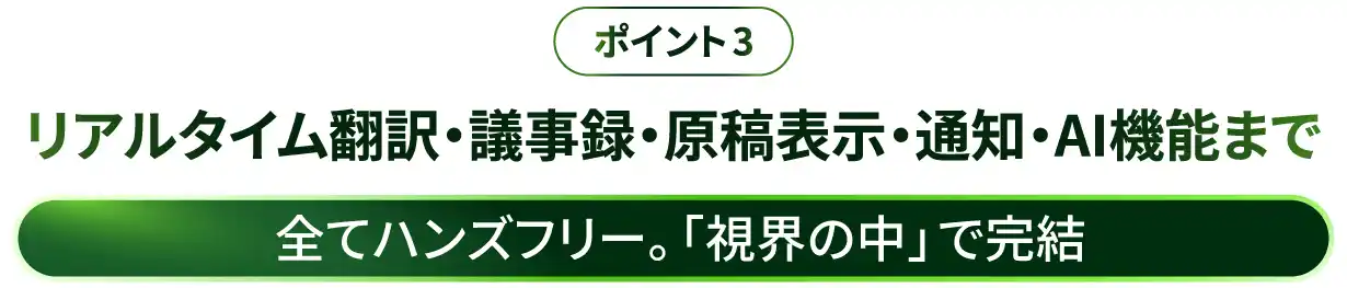 SABERAは、仕事の中で必要とされる機能を一つの眼鏡に集約し、視線を外さず、自然に利用できるように設計しています。 |