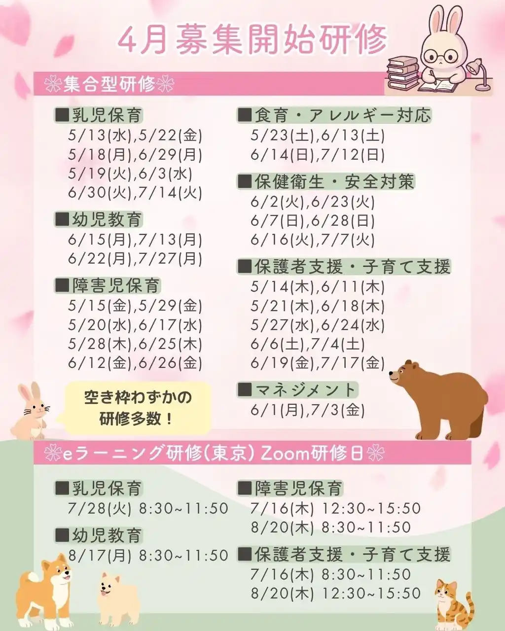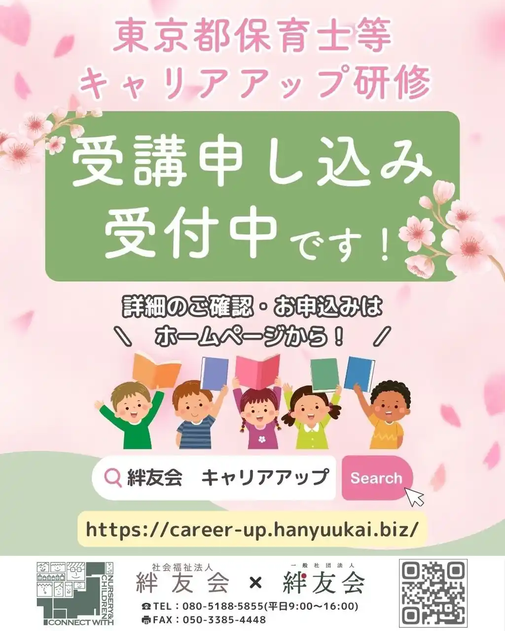 社会福祉法人絆友会・一般社団法人絆友会(所在地:東京都北区)は、令和8年度 東京都保育士等キャリアアップ研修の日程(集合研修・eラーニング研修)を公開し、受講申込の受付を開始いたしました。 |