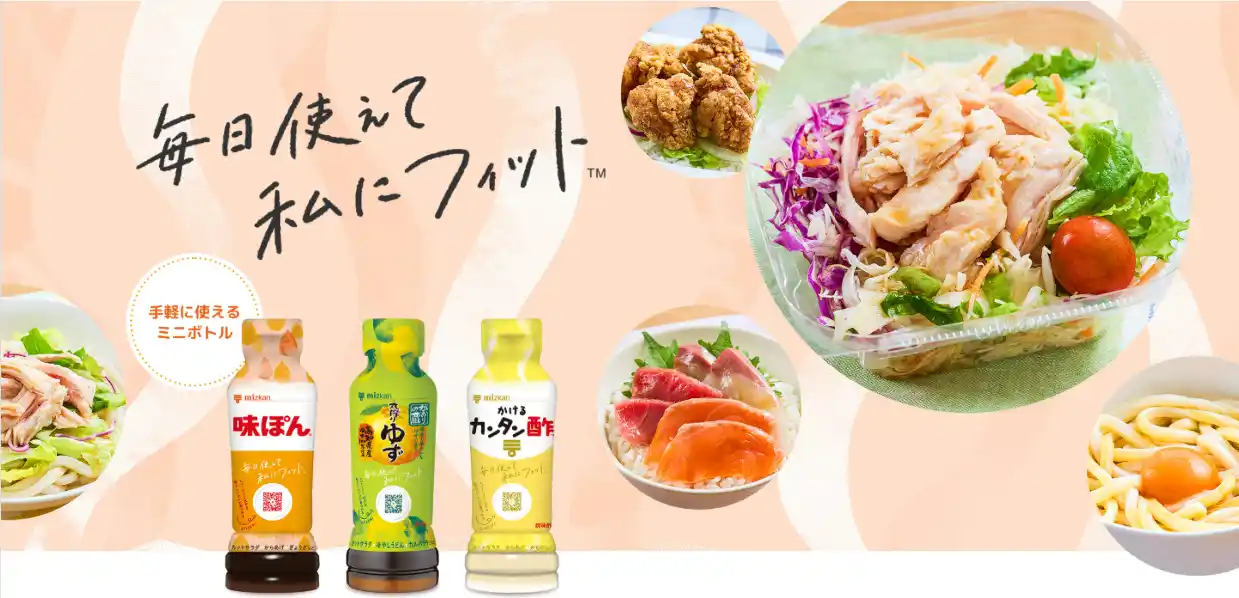 こうした背景を受け、ミツカンでは、調理にも調味にもさっと使え、毎日の食事をもっと気軽に楽しんでいただけるよう、本リニューアルを実施いたしました。あわせて、容器にはリサイクルペットボトルを採用し、環境にも配慮した仕様としています。 |