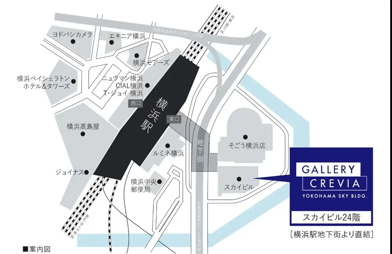 本ギャラリーは、JR・京急線、東急東横線、みなとみらい線、横浜市営地下鉄線など多路線が利用できるターミナル駅「横浜」駅の地下街からダイレクトにアクセスでき、平日の仕事帰りはもちろん、週末にも気軽に立ち寄れる立地です。 |