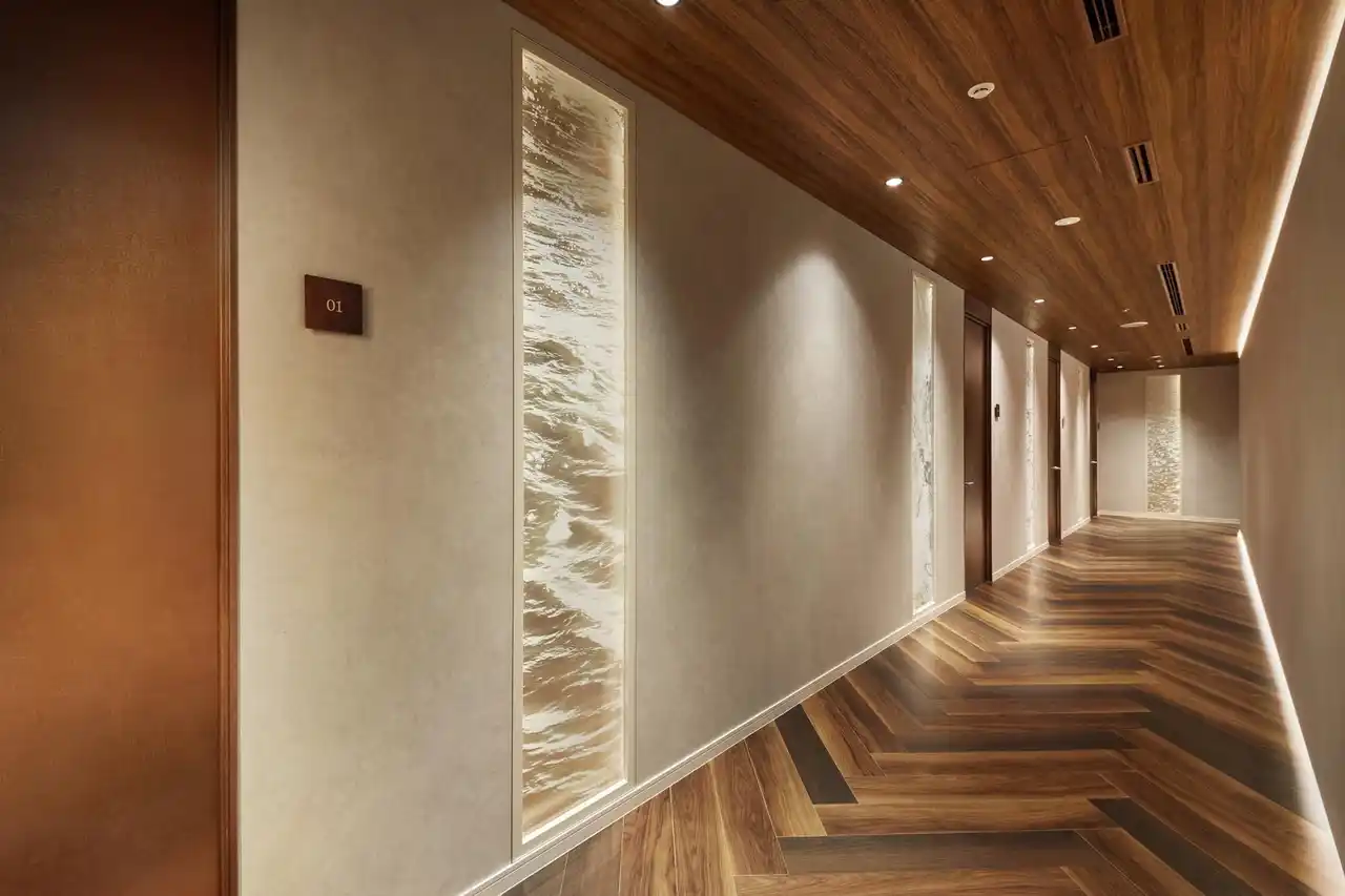 間接照明や木調を取り入れた天井・床面、座り心地や配置に配慮したインテリア・調度品など、“おもてなし”にこだわったラグジュアリーで落ち着いた空間です。 |