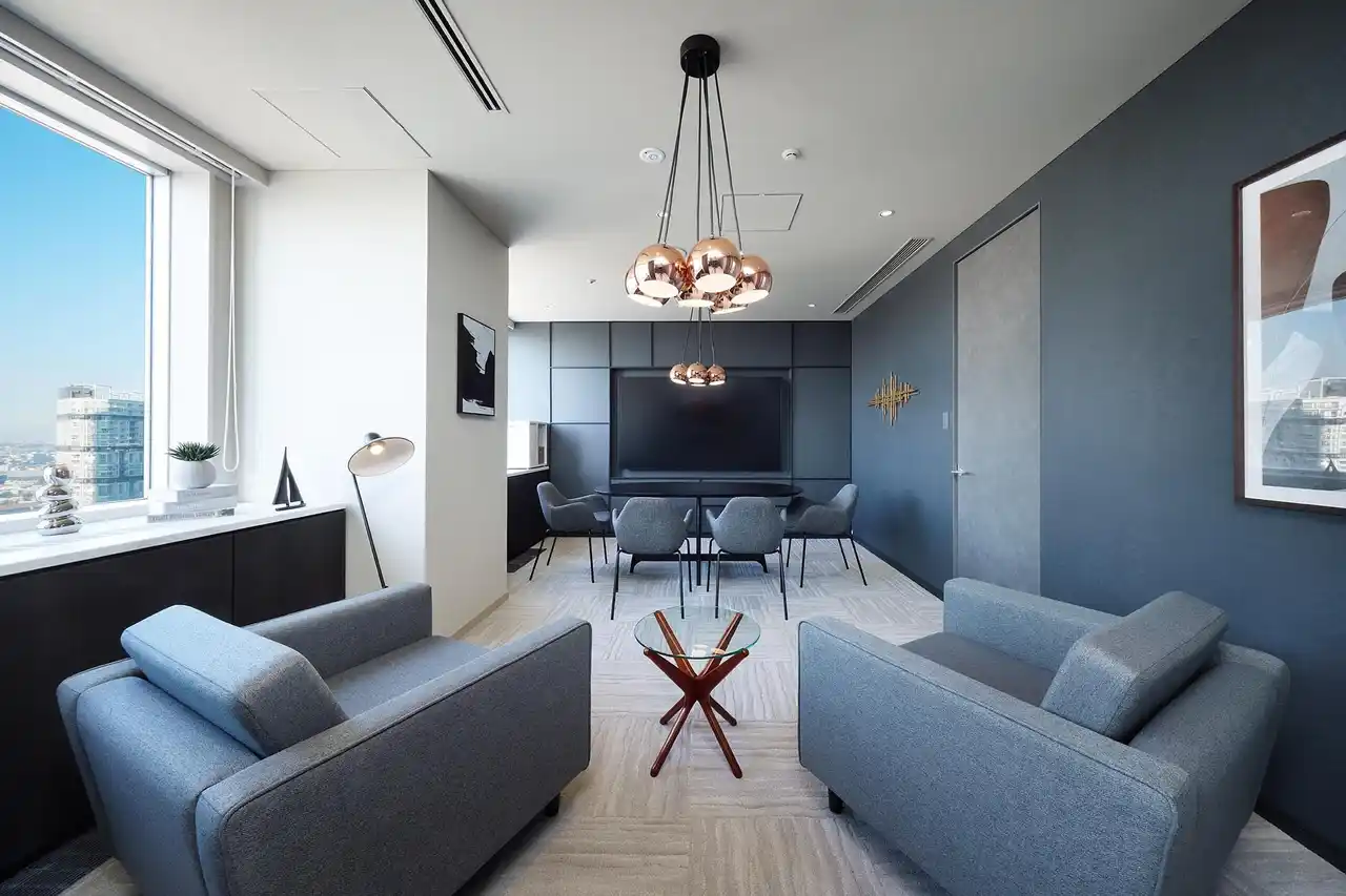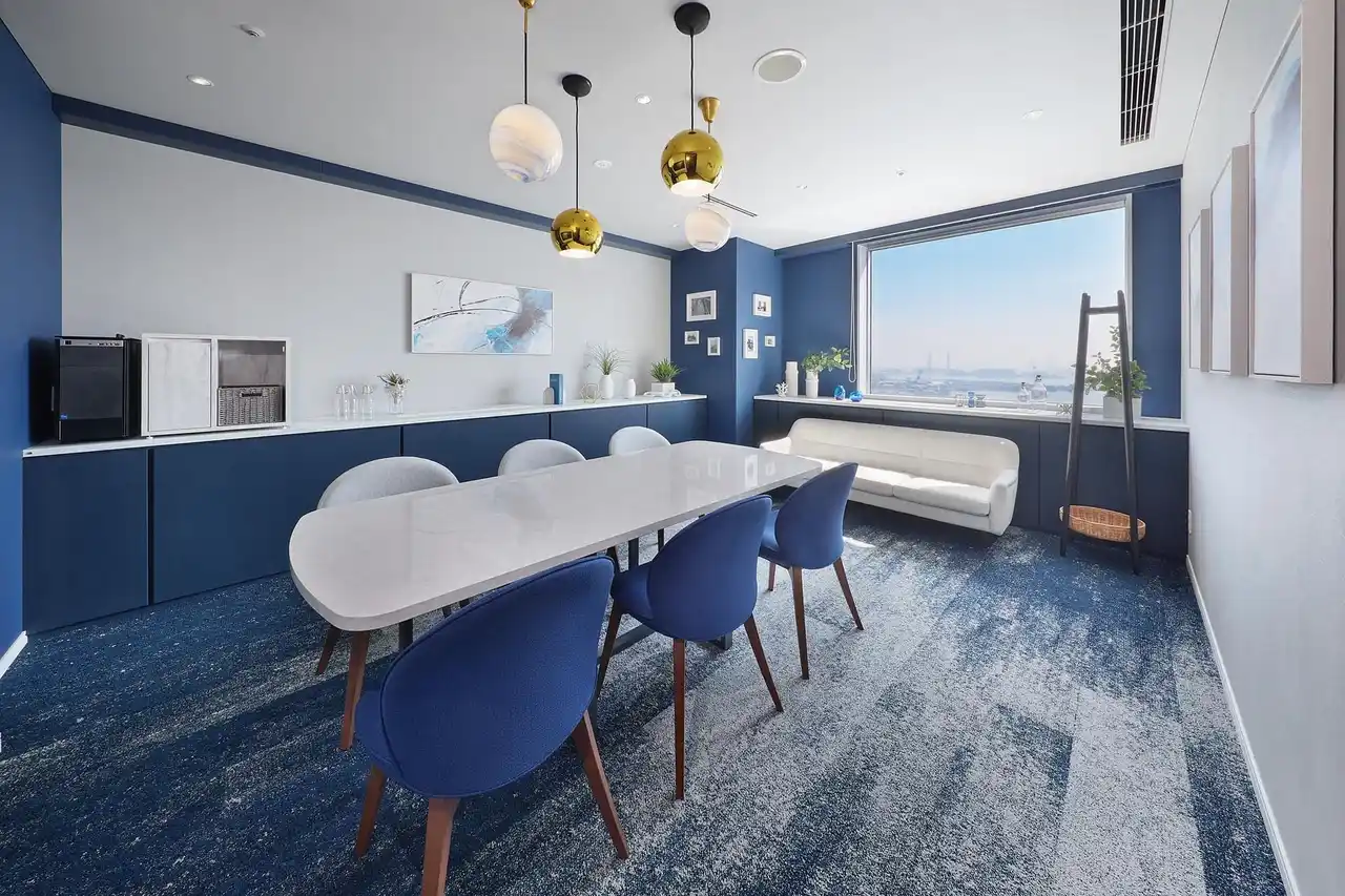 デザインは、「横浜の伝統と革新を体現する、洗練のマンションギャラリー。」をコンセプトに、住まい選びの時間が上質な時間となるよう、ホテルのラウンジのようなラグジュアリーな空間をイメージしました。ギャラリー内は横浜のイメージを体現したデザインを施し、ブルーを基調とした落ち着いた空間です。 |