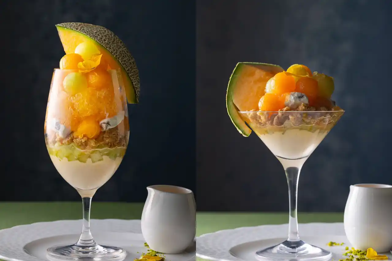 「北海道産チーズを使用したメロンパフェ 2色の味わい」 |