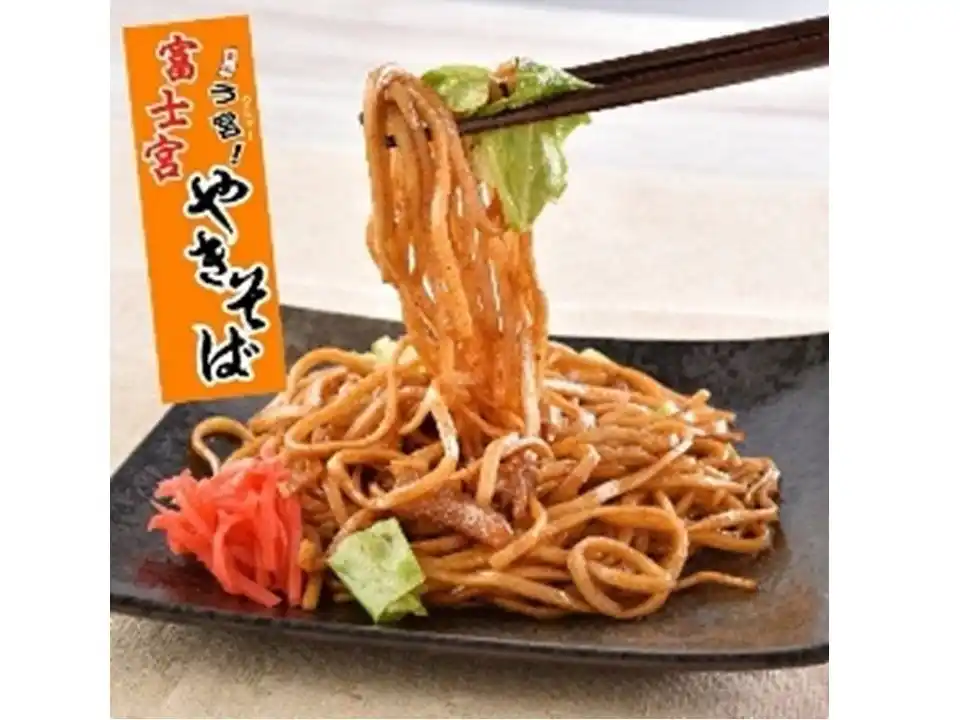 静岡B級グルメ富士宮やきそば。もちもち麺にキャベツ、肉カス、さらっとしたソースを絡め、 |