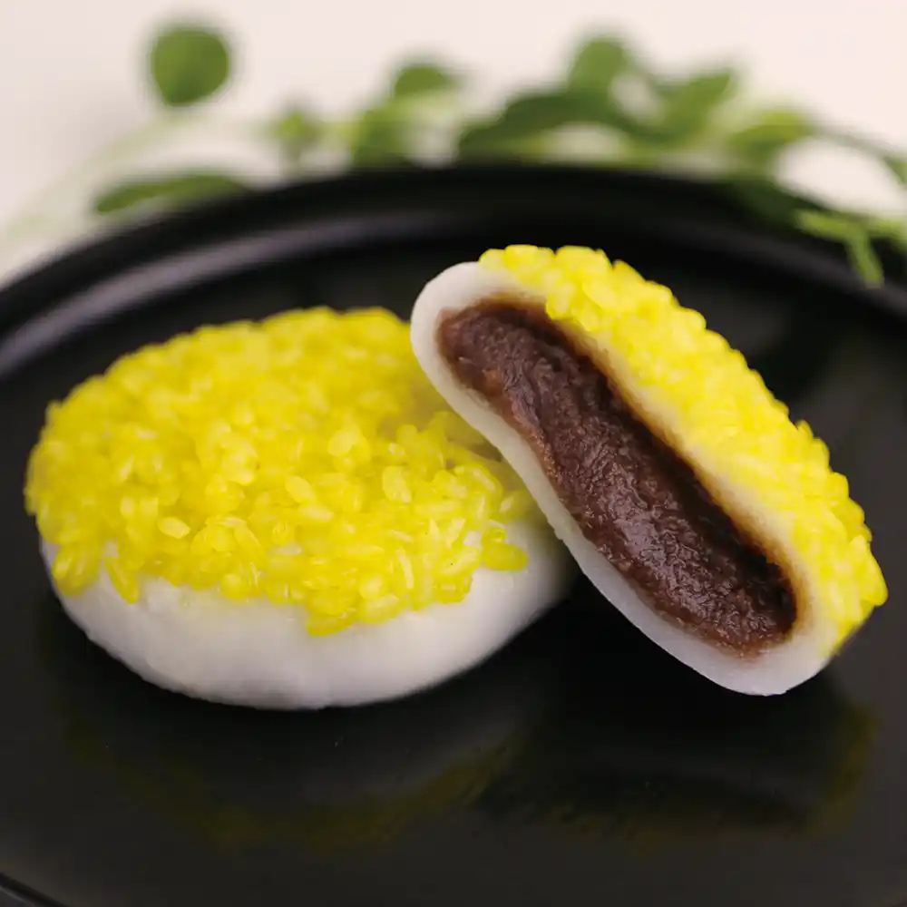 「柚子もなか」柚子の実をかたどった最中種に、白餡と柚子ジャムをブレンドした特製の柚子あんをたっぷりと詰めた、香り高い最中。 |