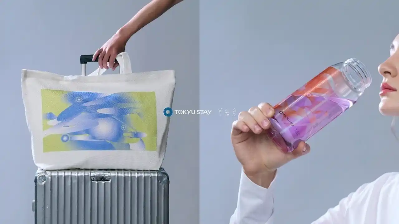 東急ステイのブランドコンセプト「Stay Connected.」と「YAR」の創作理念が融合し、“水” の多様な表情をグラフィックアートで表現したウォーターボトル( 12 種)とトートバッグ( 1 種)を 2026 年 4 月 17 日(金)から全国の東急ステイにて販売開始いたします。 |