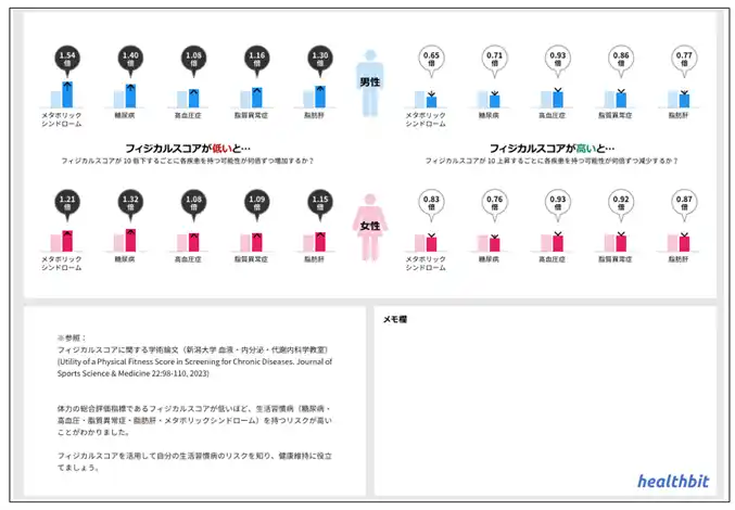 ヘルスビット株式会社(本社:東京都千代田区、代表取締役:部坂英夫、以下ヘルスビット)が開発した次世代健康指標**「フィジカルスコア」**が、一般社団法人 新潟県労働衛生医学協会(新潟ウエルネス)が実施する健康診断および人間ドックにおいて採用され2026年4月1日(水)より提供を開始しました 。 |