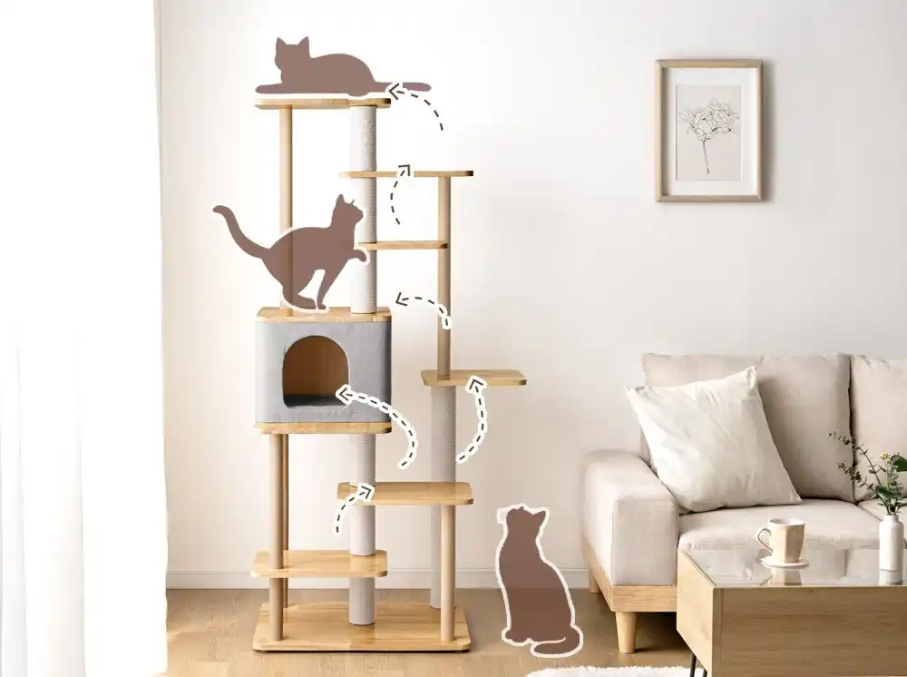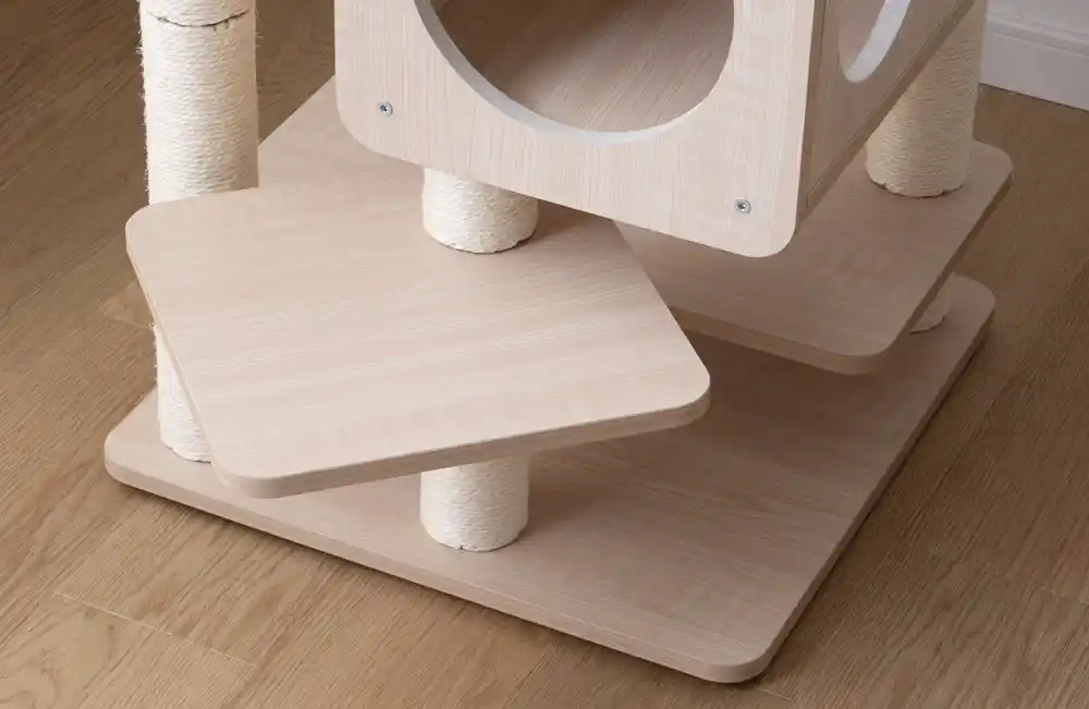 ◇登る、休む、降りる。がスムーズな木目調デザインキャットタワー |