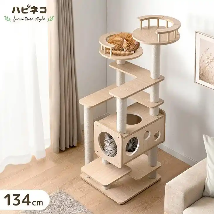 「愛猫には自由に楽しく過ごしてほしい。けれど、インテリアの美しさも妥協したくない」という方におすすめのスタイリッシュな天然木キャットタワーです。 |