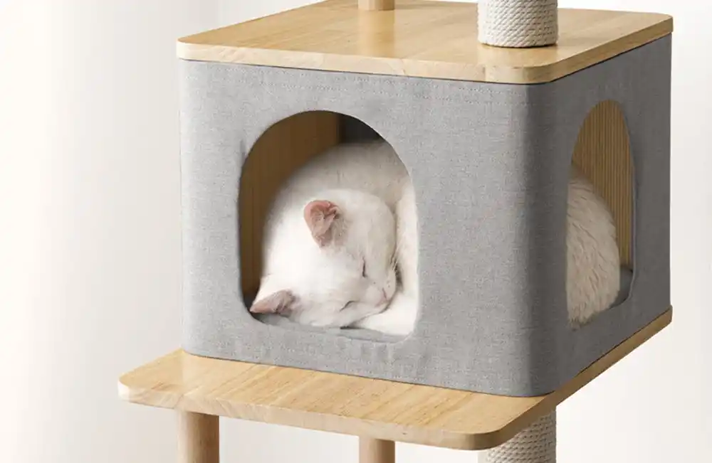 また、ハウスの内装には抗菌・防臭効果を備えた『竹素材』を使用。湿気がこもりにくく、愛猫がリラックスできる快適なプライベート空間を実現しました。 |