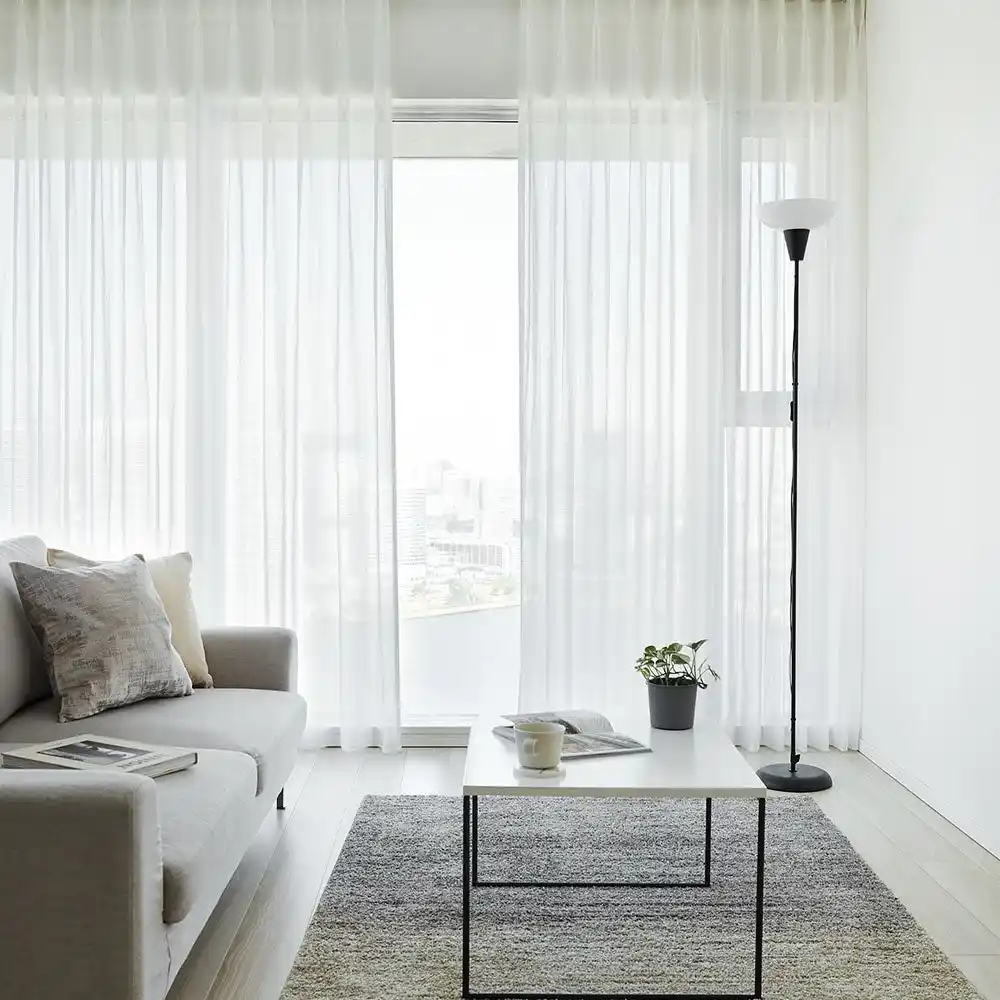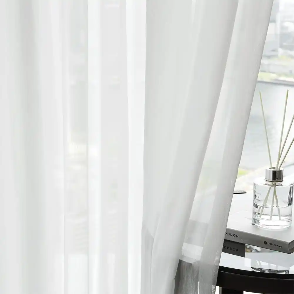継ぎ目のないシームレス仕立てで、大きな窓もすっきりと美しく整えるレースカーテン。日差しによる暑さが気になる窓辺に、セラミック微粒子が光を反射し、室温上昇を抑えて快適な空間づくりをサポートしてくれます。 |
