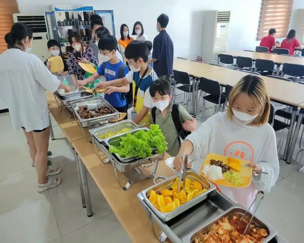 清潔で快適な学生寮には、高級家具やインバーターエアコンを完備。さらに、プロのシェフが栄養バランスにこだわった多国籍料理を提供しているため、学習の合間も食事を楽しみながらリラックスできます。まるでリゾートのような環境で、勉強だけでなく、質の高い生活も満喫できるのがEG Academyの魅力です。 |