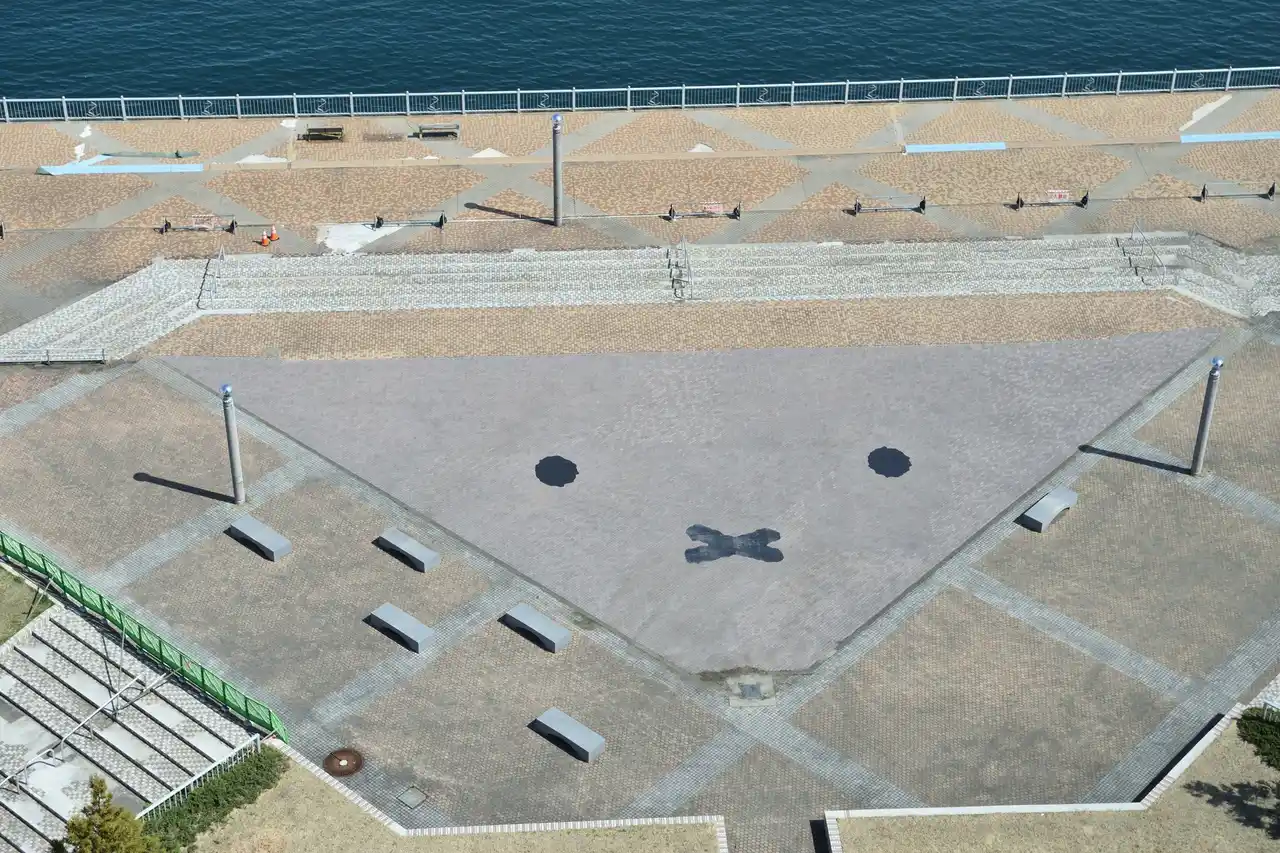 青い海公園にデザインされたミッフィーの目と口を展望台から見ることができます |