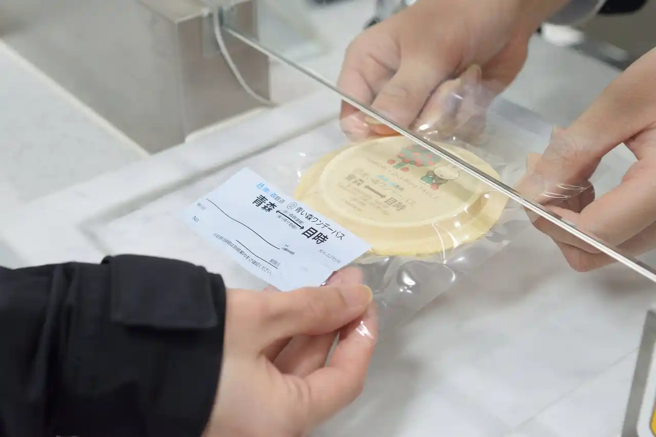青い森鉄道では2種類のコラボデザインチケットを展開。2種のうち、「青い森ワンデーパス」は青森ならではの南部せんべいに印刷された、「食べられる切符」です。 |