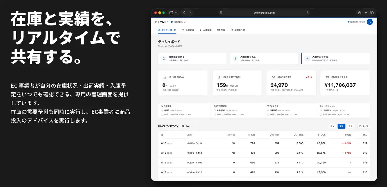 また、フレンズロジの運営開始に伴い、2026年5月よりEC事業者向け(社数限定)にフレンズロジ見学ツアー https://friendslogi.com/tour を開催いたします。 |