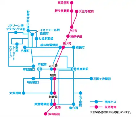 | 「堺おもてなしチケット(阪堺拡大版)」はご利用日当日、事前に以下の引換場所にて、スマートフォンのチケット画面をご呈示のうえお受け取りください。 | |||||||||||||||||||
