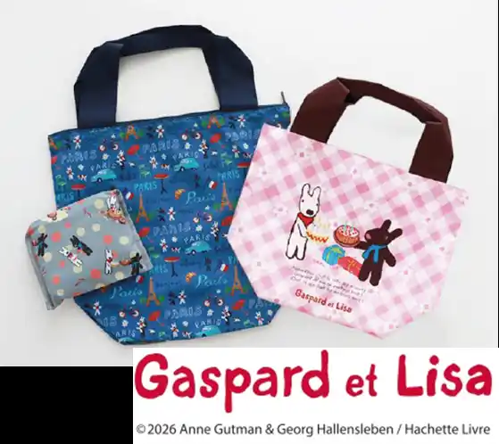フランスの絵本作品「リサとガスパール」のとびきりキュートなキャラクターを描いたエコバッグです。イオン限定カラーも登場します。用途で選べるS・Mサイズの展開、折り畳み収納ポケット付きで使いやすさも魅力です。(イオンリテールで取り扱い) |