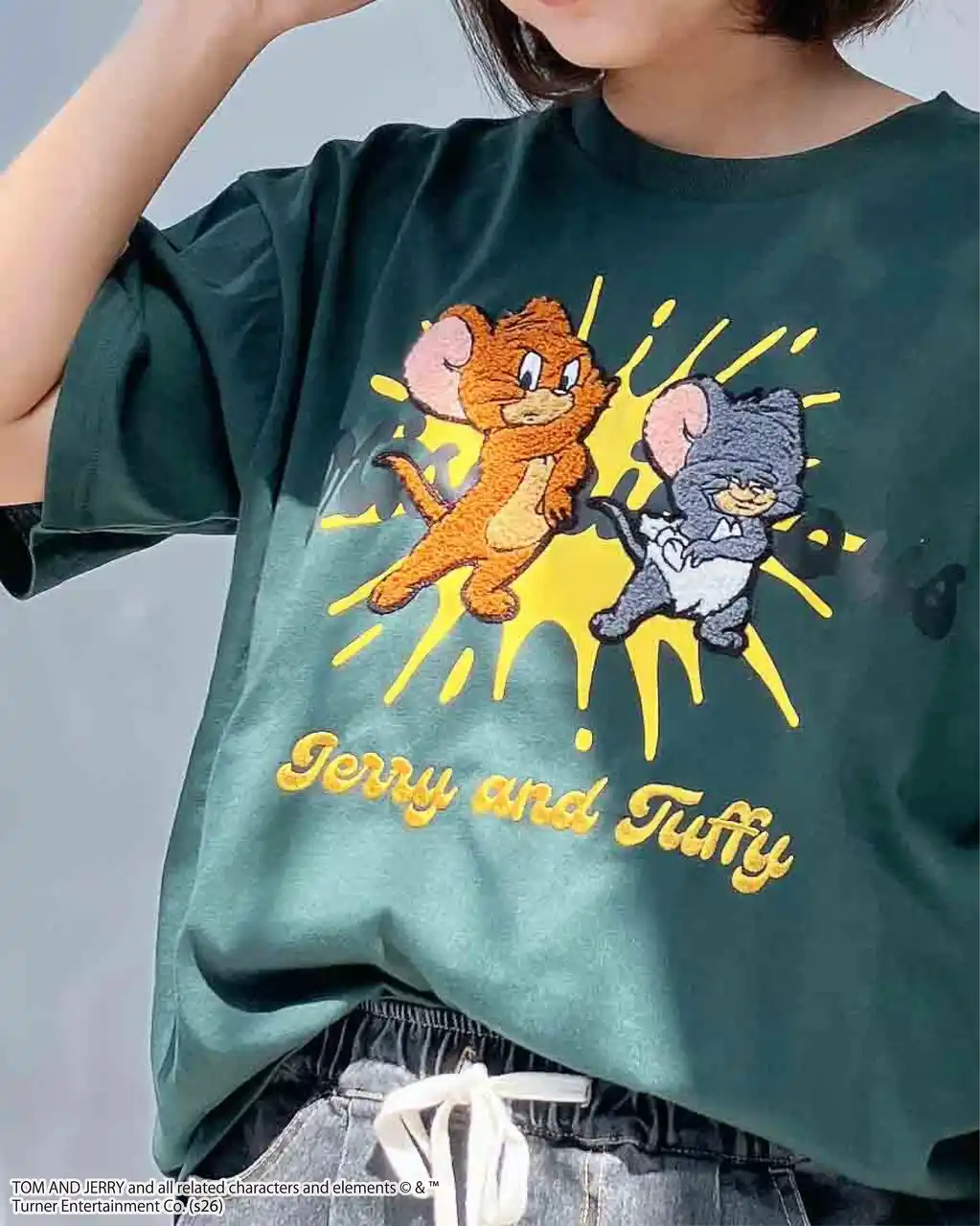フロントスタイルにはジェリーとタフィーがポーズを決めている姿がかわいすぎる、ふかふか刺繍が施されています☆ |