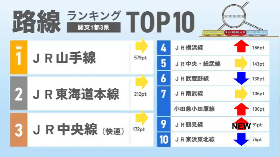 メイン路線のTOP3は不動の人気!主要路線のターミナル駅を繋ぐバイパス路線(※)の人気も継続中。 |