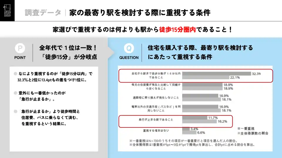 家選びで重視するのは何よりも駅から徒歩15分圏内であること! |