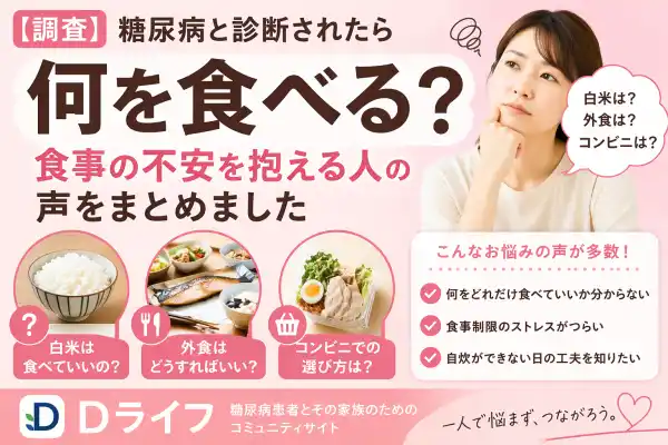 近年、「糖尿病 診断されたら 食事」「白米 食べていい」「糖質制限 外食 おすすめ」といった検索キーワードの需要が高まっています。糖尿病と診断された直後は治療方針や薬について説明を受ける機会があっても、日々の食事については「具体的に何をどう変えればいいのか」が分からないまま帰宅するというケースが多いようです。弊社運営コミュニティにも「診断後すぐに食事を変えようとしたが、どこから手をつければいいか分からなかった」という声が多く寄せられており、食事に関する情報ニーズの高さを感じています。こうした背景から、診断後の食事に関する実態と当事者の戸惑いについて整理する必要があると考え、今回の調査をおこないました。