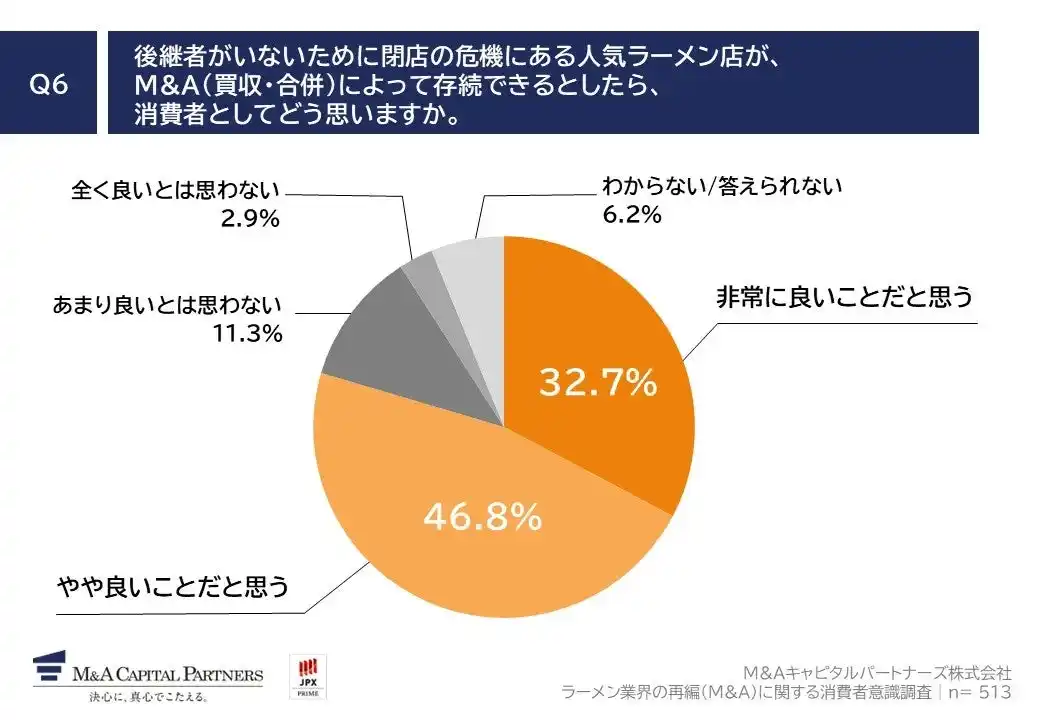「Q6. 後継者がいないために閉店の危機にある人気ラーメン店が、M&A(買収・合併)によって存続できるとしたら、消費者としてどう思いますか。」