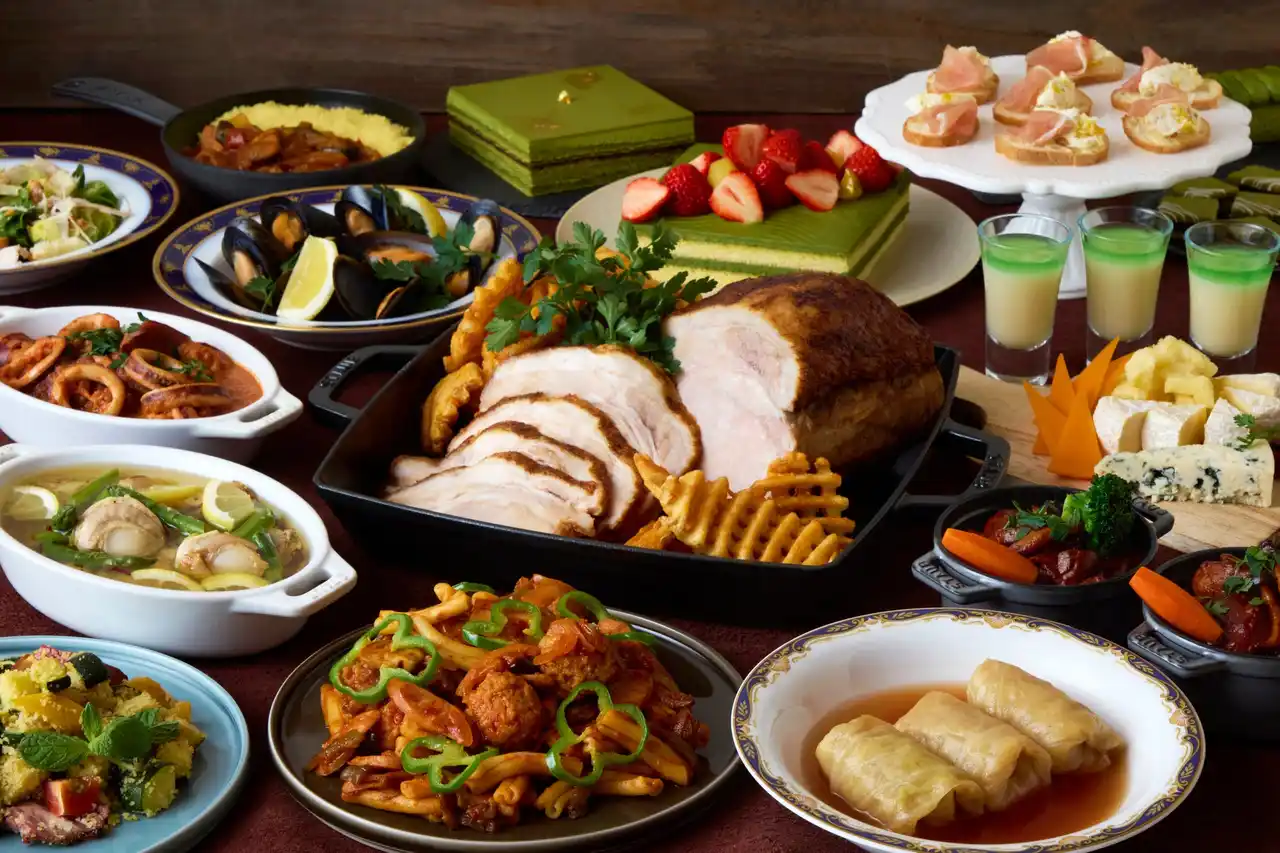 ランチタイムには、香り高い抹茶をふんだんに使用したスイーツが並ぶ「抹茶スイーツ&ランチビュッフェ」、ディナータイムには、洋食定番メニューとビストロスタイルのカジュアルな料理や郷土料理を取り揃えた「洋食ビストロ ディナービュッフェ」をご用意し、時間帯ごとに異なる魅力をお楽しみいただけます。 |
