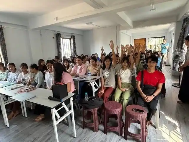 MIRAIでは、アジア各地で日本での就業を希望する若者への教育支援を行っています。先日実施された卒業生向けの就職説明会では、多くの生徒が真剣な表情で参加し、日本での就業に対する強い意欲を示しました。 |