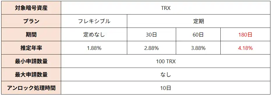 ■TRXのステーキングルール概要 |
