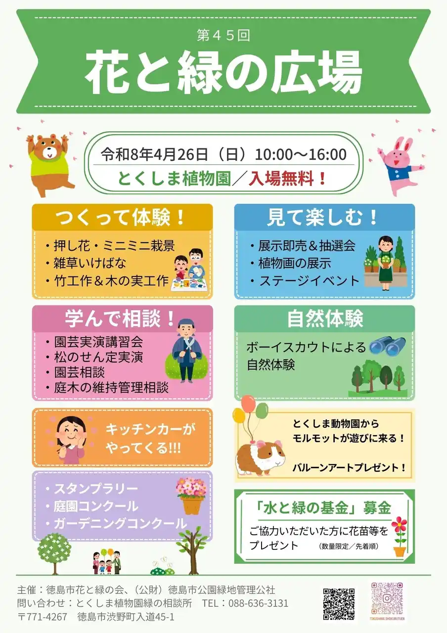 | とくしま植物園では、令和8年4月26日(日)に「第45回花と緑の広場」を開催いたします。 | |||